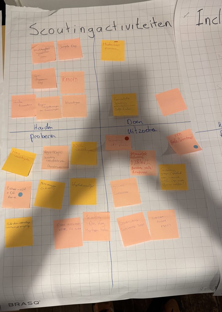 Vrijdag 21 november hebben we een avond georganiseerd om na te denken over de toekomst van ons Scoutcentrum. Samen met vertegenwoordigers van het Scoutcentrum en de vaste Scoutinggroepen op ons terrein, hebben we langs acht thema’s ideeën verzameld en besproken.