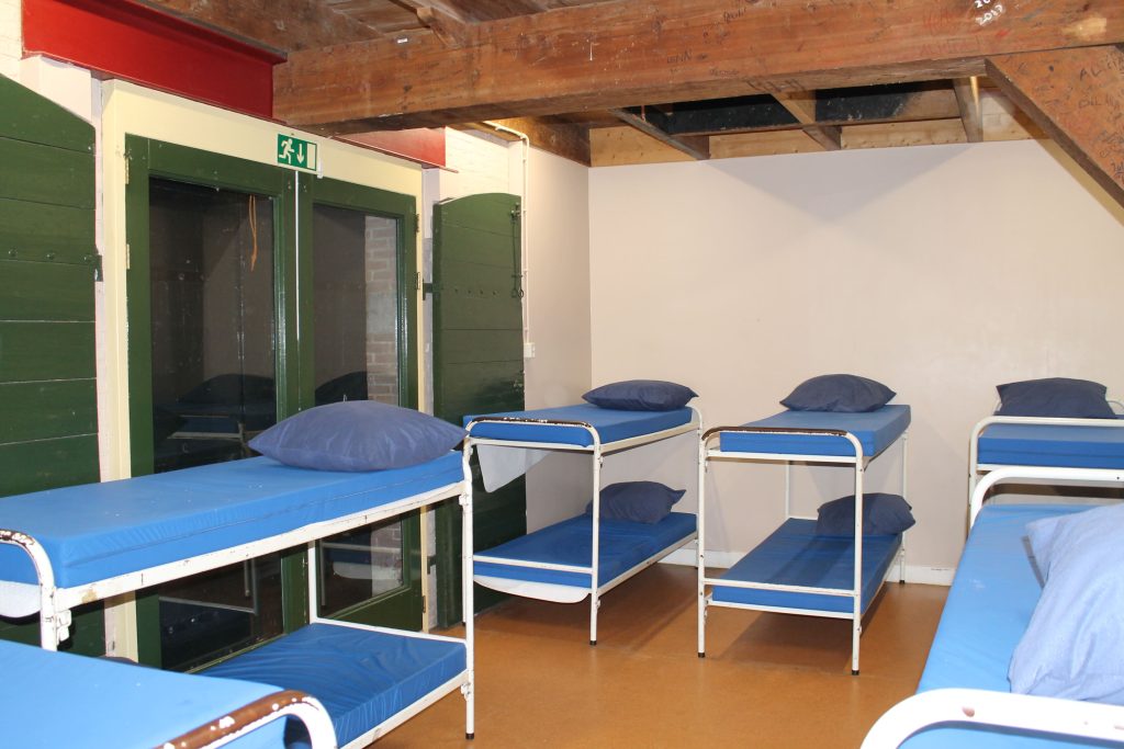 - Slaap capaciteit: Twee slaapzalen met 4 en 12 bedden